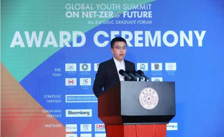 Yang Bin then announced the winners of the Best Paper of Academic Track. 10 graduate students won honors for their outstanding research on the synergy between climate and other areas, namely Nature/Biodiversity, Energy, Health/Food, Transportation, and the UN’s Sustainable Development Goals (SDGs). Deng Zhu, a Ph.D candidate at Tsinghua, presented his award-winning research.