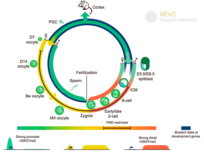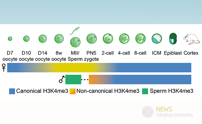 Research groups of Prof. Xie Wei and Prof. Na Jie at Tsinghua University have published a research paper in Nature on September 15th, entitled “Allelic reprogramming of the histone modification H3K4me3 in early mammalian development”. Xie Wei’s group has also published a paper in Molecular Cell on September 16th, entitled “Resetting Epigenetic Memory by Reprogramming of Histone Modifications in Mammals”. These two papers focuse on epigenetic reprogramming in mouse early development, together revealing how histone modifications are transmitted from parents to progeny in mammals.
