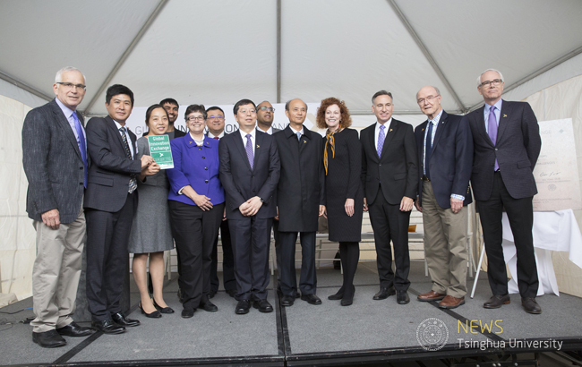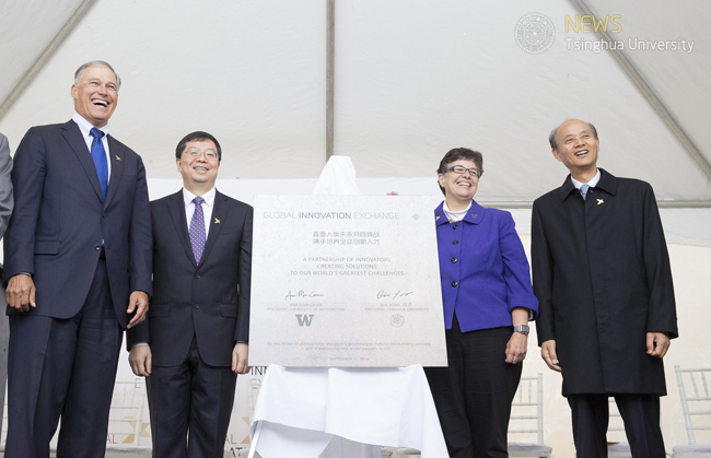 Bellevue, Washington, September 23, 2016 (Beijing, September 24, 2016)– Tsinghua University and the University of Washington unveiled a commemorative plaque in honor of the groundbreaking of the Global Innovative Exchange's first building in Seattle. President Qiu of Tsinghua University, President Cauce of the University of Washington, Governor Jay Inslee, Consul General Luo Linquan, and Mary Snapp, Corporate Vice President of Microsoft Corporation made remarks, while over 200 guests from academic, political and business circles in China and the US witnessed the moment. This ceremony took place on September 23rd, exactly one year since Chinese President Xi Jinping expressed his support and presented GIX with a metasequoia.
