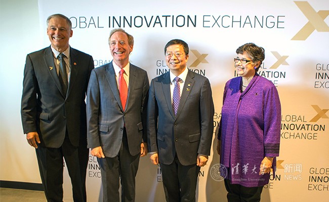 The GIX (Global Innovation eXchange institute) celebration to mark the opening of the GIX building and to welcome the first two cohorts of GIX graduate students was held on September 14th at the GIX building in Bellevue Spring District, Washington State, the United States. President of Tsinghua University Qiu Yong, President of the University of Washington Ana Mari Cauce, Consul General of the People's Republic of China in San Francisco Luo Linquan, Governor of Washington State Jay Inslee, former Governor of Washington State and former U.S. Ambassador to China Gary Locke, former Governor of Washington State Christine Gregoire, former Microsoft's CEO Steven Ballmer, Microsoft's President and Chief Legal Officer Brad Smith, and Microsoft's CEO Satya Nadella attended the ceremony. Yang Bin, Vice President of Tsinghua University, and Vikram Jandhyala, Vice President of the University of Washington presided over the ceremony.