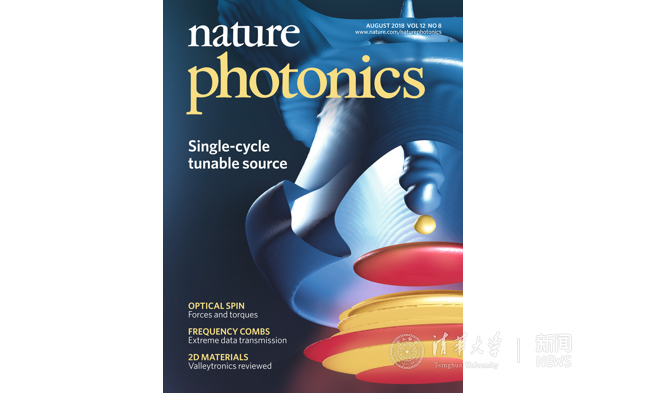 Recently, a research article from Prof. Wei Lu’s group at Tsinghua University entitled "Relativistic, Single-cycle Tunable Infrared Pulses Generated from a Tailored Plasma Density Structure" has been published in the prestigious journal Nature Photonics, and chosen as the cover story for the August issue (Fig. 1). In this article, a novel scheme for tunable relativistic single-cycle infrared pulses is proposed, where a specially tailored plasma density structure is utilized to function as a “photon decelerator” (a nonlinear optical frequency converter) to efficiently convert a near-infrared laser with a wavelength of 0.8-1 μm to a relativistic near-single-cycle infrared pulse with tunable wavelength in the range of 5-14 μm. The referees of Nature Photonic highly appreciated the novelty and feasibility of this idea and expect it to be verified soon in future experiments. This new single cycle infrared source will definitely fill the long-standing gap in intense ultra-short infrared lasers in the 5-14 μm range, opening up new opportunities for relativistic infrared nonlinear optics, and for its application in attosecond science, ultrafast chemistry, strong-field physics, and novel accelerators and light sources.