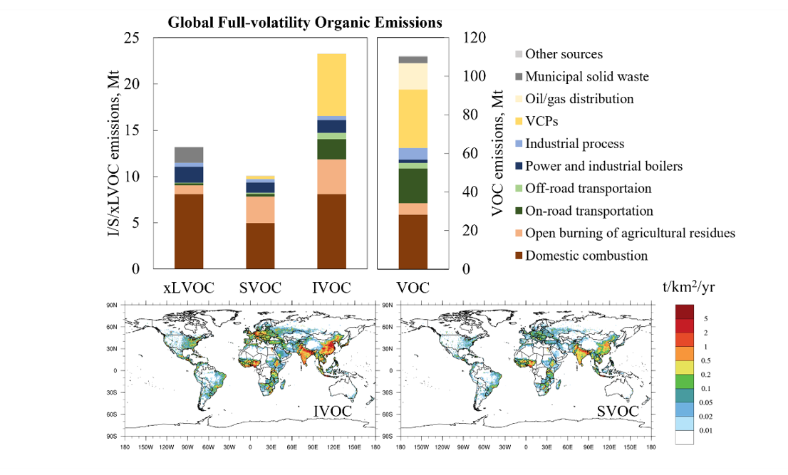 Traditional global emission inventories classify primary organic emissions into non-volatile organic carbon and volatile organic compounds (VOCs). However, information about volatility distribution and overlook the emissions of a significant amount of intermediate-volatility and semi-volatile organic compounds (IVOCs and SVOCs, respectively) is still lacking. Professor Shuxiao Wang's team from School of Environment at Tsinghua University has established the first global anthropogenic emission inventory of full-volatility organic compounds. This inventory provides an analysis of volatility distribution, sectoral contributions, and spatial distribution of global organic emissions. This research will enhance the understanding of the impact of organic emissions on global air pollution and climate change.