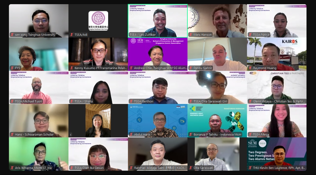 The Tsinghua Southeast Asia Center (TSEA) recently held a virtual alumni gathering attended by 107 Tsinghua University alumni and program fellows of TSEA. The gathering aimed to gain insights into the evolving needs of Tsinghua alumni and program fellows, explore possibilities of TSEA’s support in meeting these growing demands, and showcase the center’s impactful initiatives and collaborative potential.