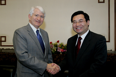 Dr. Gene Block, Chancellor of the University of California, Los Angeles (UCLA), visited Tsinghua University on January 26. Tsinghua University Council Chairman Hu Heping had a discussion with him. Tsinghua Vice President Yuan Si also participated in the discussion. They exchanged ideas on promoting further collaboration in research as well as on faculty and student exchange.