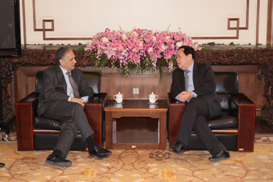 The President of the University of Chicago, Dr. Robert Zimmer, met with the President of Tsinghua University, Gu Binglin, during his visit on April 27.