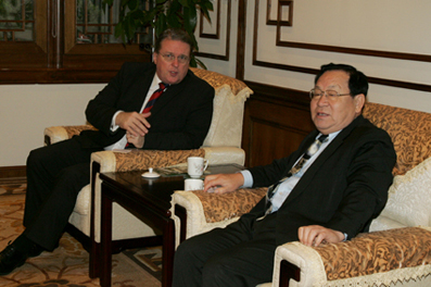 Mr. Declan Kelleher, Ireland's Ambassador to China, visited Tsinghua University on November 29th. In a discussion with Mr. Kelleher, Tsinghua University President Gu Binglin provided an outline of the university's academic development and its cooperation with Irish institutions. The two men exchanged ideas on means of promoting further collaboration, especially faculty and student exchange between Tsinghua and Irish universities and enterprises.