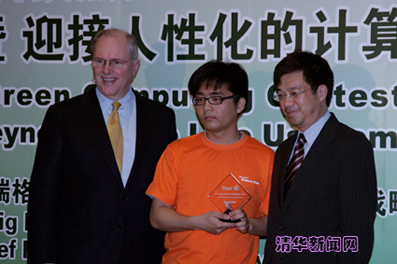 The contest encouraged students to identify environmental and energy problems in their daily lives, propose innovative solutions that use a variety of Microsoft information technologies, illustrate their concepts of green lifestyles, and promote their ideas via the Internet. The organizing parties received a total of 252 submissions and conducted comprehensive evaluations according to social value, technical value, originality, feasibility and the demonstration's effect on the audience. "Monitor Savor" from Tsinghua University won first prize. "Green Travelling" from South China University of Technology and the "X-Dress" from Xi'an University of Electronic Technology tied for second prize. Three entries shared third prize: "1 cm" and "Damocles Sword" from Sun Yat-sen University, and the "C-" from Bei Hang University. Craig Mundie and Professor Zongkai Shi, Vice Chairman of Tsinghua University Council, both presented prizes at the ceremony in the Main Building.