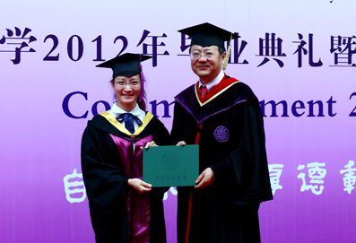 Tsinghua University Commencement 2012 for post-graduates and under-graduates were held separately in the Comprehensive Gymnasium on the mornings of July 3 and 4, 2012. More than 4,100 post-graduates and 3,300 under-graduates complete their studies at Tsinghua University and receive academic degrees. President of Tsinghua and Chairman of the Degree Conferral Committee Chen Jining, Tsinghua University Council Chairman Hu Heping, and other university leaders awarded degrees and certificates to the new graduates.