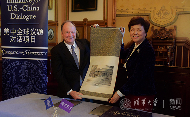 Tsinghua University and Georgetown University are long term partners in global governance talents cultivation and China-US dialogue. During her visit to Georgetown University, Chen Xu met with President John DeGioia, and the two parties co-signed “Letter of Intent on US-China Dialogue Collaborative Programs between Tsinghua University and Georgetown University”.