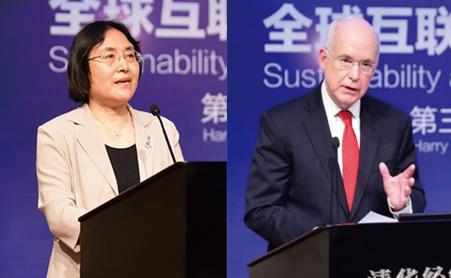 Tsinghua Vice President Yang Bin, Prof. Kenneth Freeman, Allen Questrom Professor and Dean in Management, Boston University Questrom School of Business, and Mr. Harry Susilo, Founder and Co-Chairman of the Harry Susilo Institute for Ethics in the Global Economy and the Founder of the Sekar Group, attended the forum. The President of Boston University Prof. Robert Brown and his wife Dr. Beverly Brown were also present at the symposium.