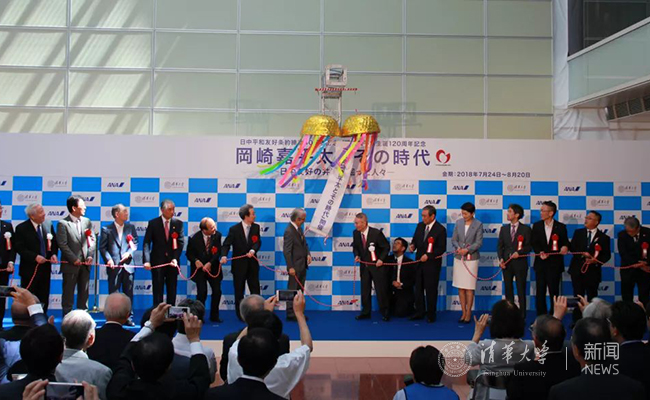 On July 24, 2018, the opening ceremony for the exhibition of “Okazaki Kaheita and his Era” was held at Haneda Airport, Tokyo. The Chinese Ambassador to Japan Cheng Yonghua, former President of Tsinghua University Gu Binglin, Japanese former speaker of the House of Representatives Yohei Kono, Japanese member of the House of Representatives Yuko Obuchi, Counselor of the ANA Group Yoji Ohashi, Chairman of the Board of the ANA Group Shinichiro Ito, Chairman of the Japan-China Friendship Association Uichiro Niwa, and other distinguished representatives were present at the opening ceremony.