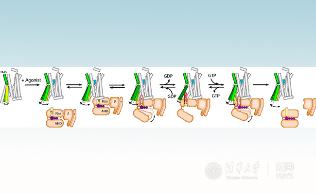 On 9th May 2019, Xiangyu Liu and Xinyu Xu in Professor Brian Kobilka’s group in the School of Medicine, Tsinghua University, published an article entitled “Structural Insights into the Process of GPCR-G Protein Complex Formation” in the journal Cell. The paper reported an active β2AR structure obtained by fusion with the C terminus peptide of the Gαs protein (GsCT) and the structure of GDP bound Gs heterotrimer (GsGDP).  These structures provide evidence for an alternate interaction between the β2AR and Gs that may represent an intermediate that contributes to Gs coupling specificity. In the same issue of Cell, Professor Brian Kobilka’s group in the School of Medicine, Stanford University, published a paper entitled “Assembly of a GPCR-G protein complex”, which reports their efforts to investigate the dynamic process for GPCR-G protein complex formation using time-resolved mass spectrometry. These two papers support each other and reveal the molecular mechanism of GPCR-G Protein complex formation from different aspects.