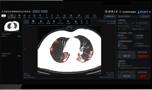 It is capable of processing a large number of chest CT images of suspected cases and coming up with comprehensive clinical diagnoses in accordance with the most up to date government guidelines within a very short timeframe. It serves to significantly cut the workloads for clinicians and radiologists and shortens waiting periods for patients.