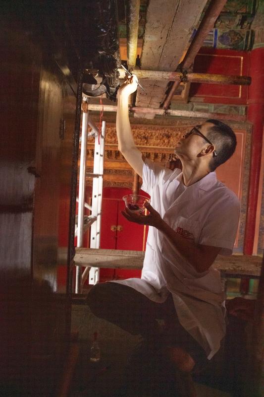 In this quiet palace courtyard, Min deals with cultural artifacts with patience. As different lacquer items require a wide variety of restoration processes, Min has faced different crafting challenges. “We have to learn and do everything step by step. The process is pretty long, but I think it's fun and not boring.”