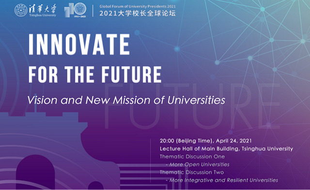On April 24, the eve of its 110th anniversary, Tsinghua University will host the Plenary Session of the Global Forum of University Presidents 2021 (GFUP 2021). Tsinghua has invited presidents from universities across the globe—including the US, Japan, Kenya, Italy, Australia, Russia, Chile, and Germany—to participate in the forum and share their views on the theme of “Innovate for the Future: Vision and New Missions of Universities.”