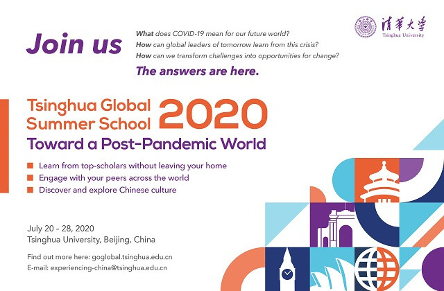 The Tsinghua Global Summer School 2020 with the theme “Toward a Post-Pandemic World”will launch this month. It is open to all students from Tsinghua's partner universities around the world with the aim to develop an understanding of sustainable development after the COVID19 pandemic for the students.