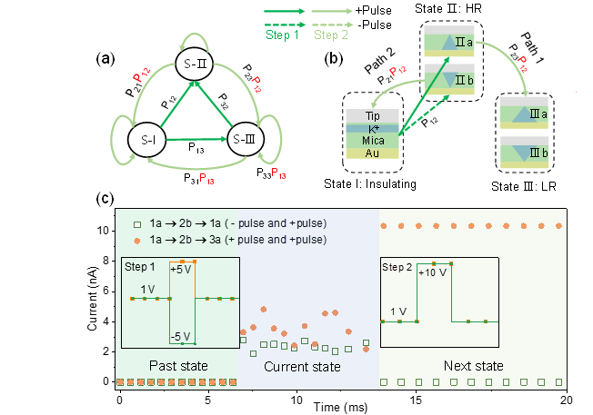 Figure 2. The realization of a non-Markov chain in a single 2D mineral RRAM.