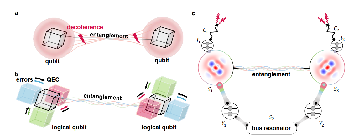 Recently, Luyan Sun and collaborators achieved a breakthrough in addressing this crucial challenge. By encoding quantum information into spatially separated bosonic modes, they successfully realized entangled logical qubits protected by quantum error correction. This not only demonstrates the significant potential of quantum error correction in protecting quantum information, but also provides an essential technological foundation for practical quantum computing and quantum networks.