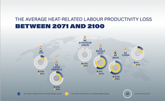 The effects on workers is more evident in regions that are being exposed to dangerously high ambient temperatures.