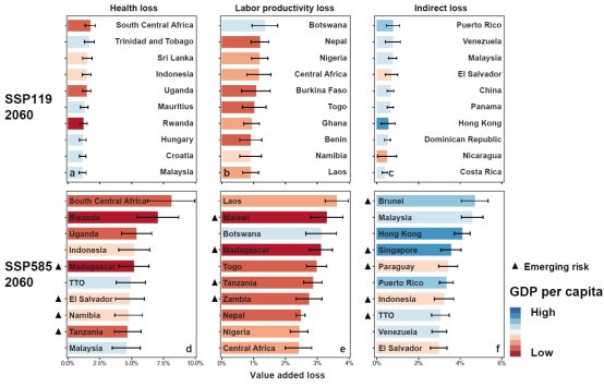Figure 1 Global heat-related losses in the midcentury and their distributions across the world.