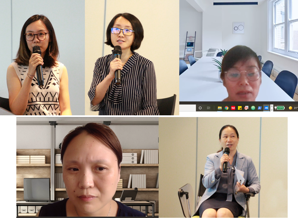 The "International and Domestic Experience Sharing" dialogue session (from left to right, from top to bottom: Ms. Wang Hongyue, Ms. Gao Si, Associate Researcher Liu Xiaojie, President Li Bing, and Director Wu Guifang)
