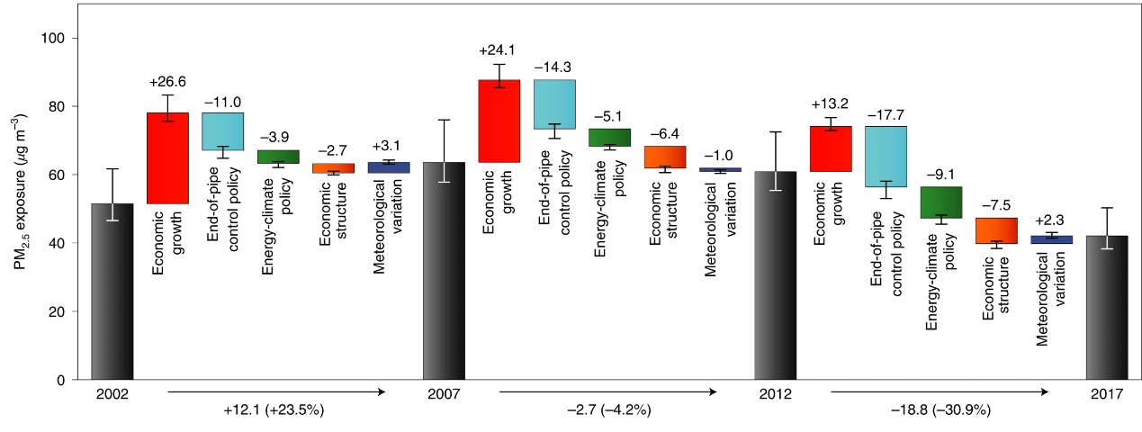 Figure 1 Long-term trends and main drivers of PM2.5 exposure in China during 2002-2017