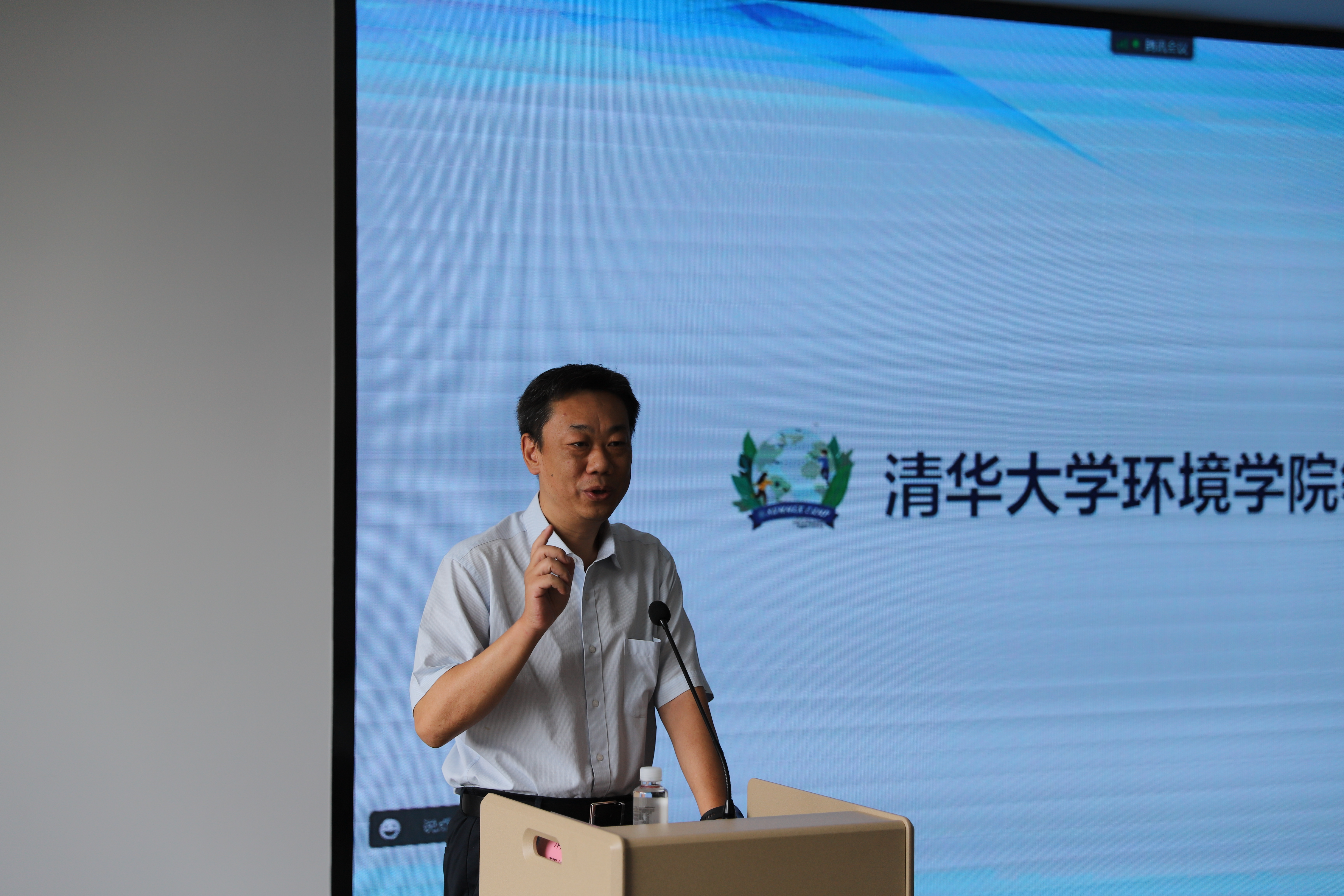 On the morning of August 18, Yue Dongbei introduced the profile of Tsinghua University’s environmental disciplines to the students.