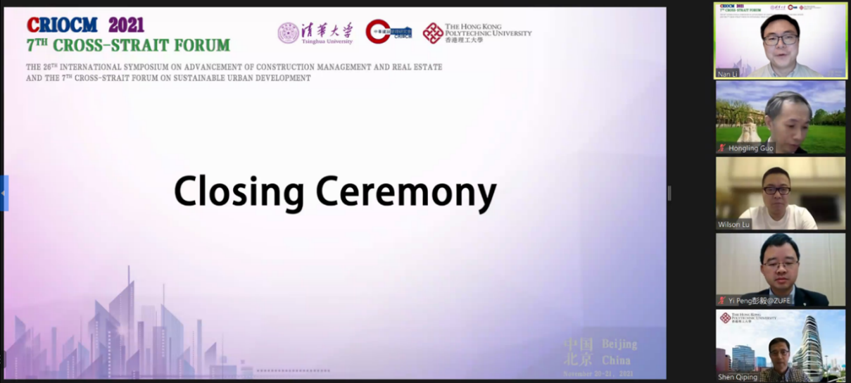 华体会娱乐(中国)网12月10日电 11月20日-21日,第二十六届建设管理与房地产发展国际学术研讨会(CRIOCM 2021)暨第七届海峡两岸可持续城市发展论坛在线成功举行。本次会议由华体会娱乐平台、中华建设管理研究会和香港理工大学联合主办,华体会娱乐平台土木水利学院、华体会娱乐平台未来城镇与基础设施研究院和香港理工大学可持续城市发展研究院联合承办。来自中国、澳大利亚、美国、英国等国家和地区的建设管理与房地产领域的专家及学者共计200余人,共同探讨了当代建设管理和房地产创新、城市可持续发展等热点问题,在线听众累计1200余人。