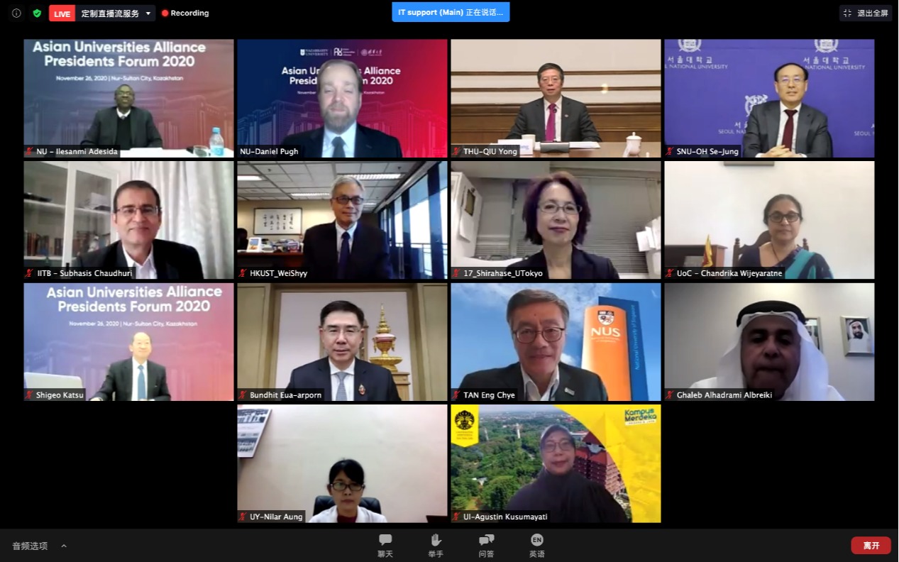11月26日下午,2020年亚洲大学联盟校长论坛在线拉开帷幕。论坛以“知识就是力量:在VUCA世界中更具韧性的亚洲大学”为主题,来自亚洲大学联盟13所大学的校领导出席了此次论坛。