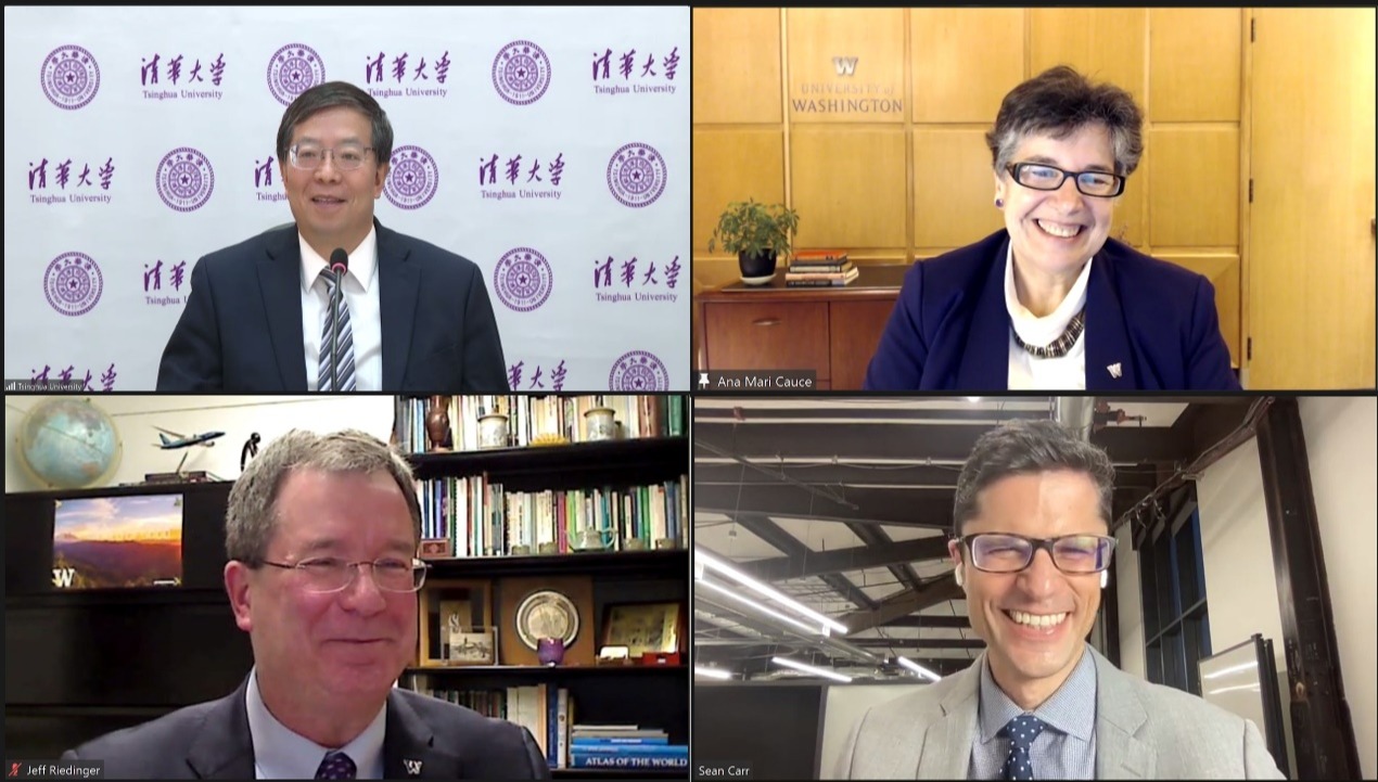 1月20日,华体会娱乐平台校长邱勇与华盛顿大学校长安娜·玛丽·科斯(Ana Mari Cauce)举行在线会谈,就进一步深化两校未来合作,特别是全球创新学院(Global Innovation eXchange Institute)的相关合作进行了交流。