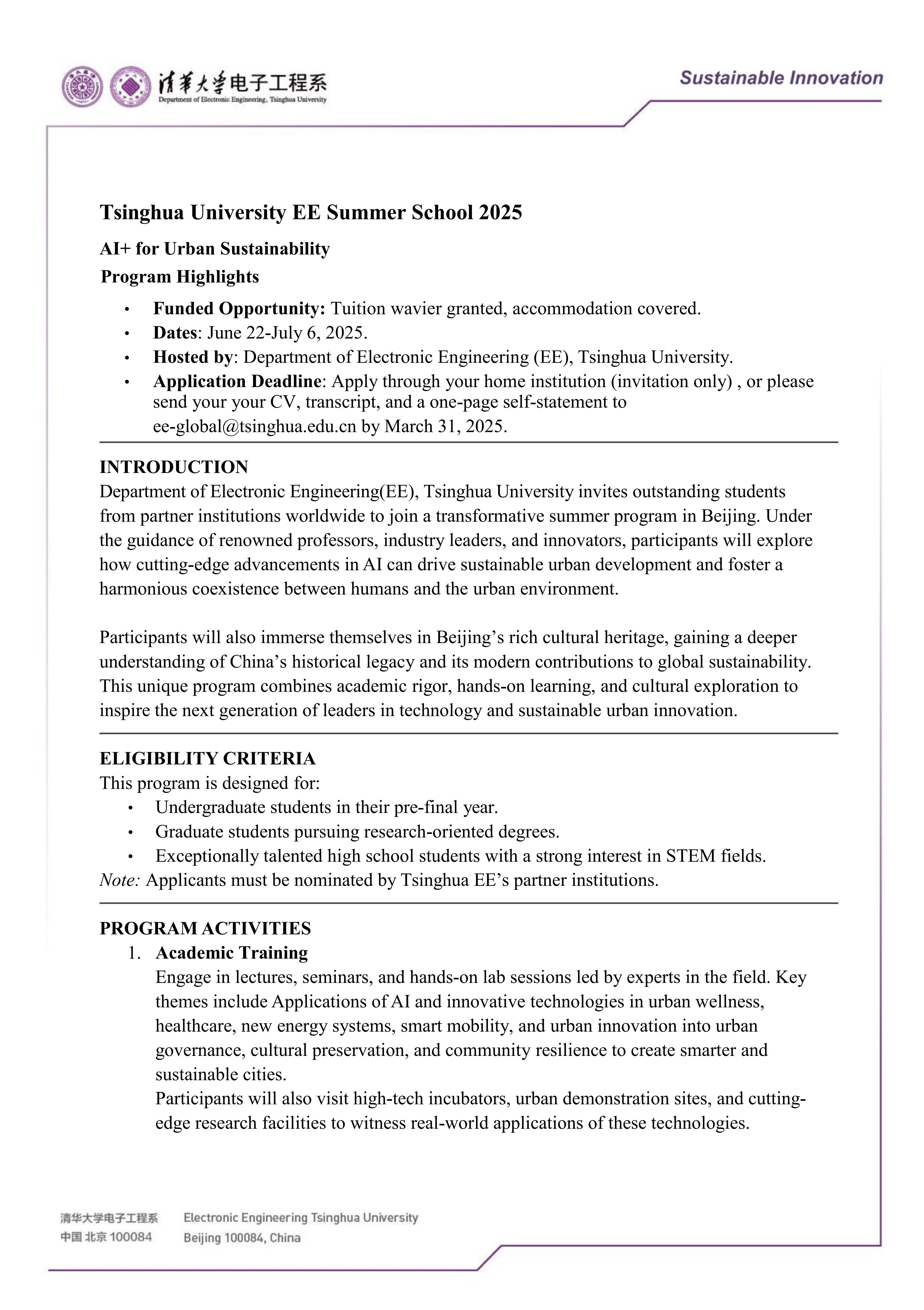 Tsinghua University EE Summer School 2025