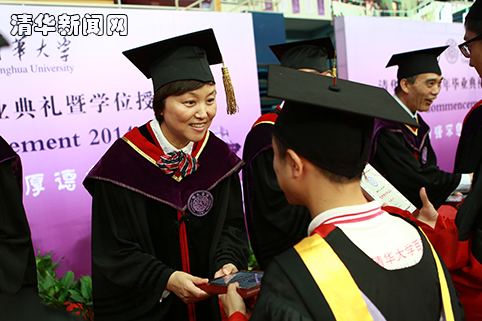 陈吉宁还特别介绍了一对今年毕业的夫妻,热能系硕士毕业生仲晓波和热能系博士毕业生陈程,夫妻二人带着今年4月刚出生的女儿来参加学位授予仪式。现场毕业生以热烈的掌声向这一家清华毕业生送上祝福。