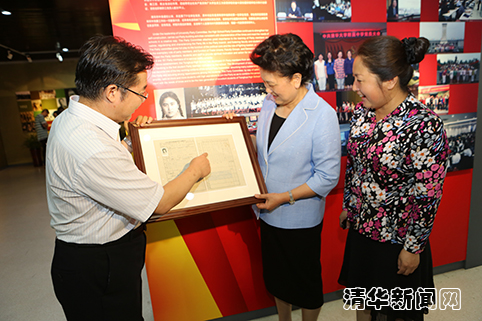 上午9时许,刘延东首先参观了附中校史馆。2015将迎来清华附中建校100周年。刘延东一边仔细观看校史展览,一边听取清华附中校长王殿军、校党委书记方妍对附中办学历史、办学思想和办学特色的介绍。在这里,刘延东还收到了附中赠送的一份特殊礼物——当年她就读清华附中时的学籍卡复制品。刘延东1961年至1964年在清华附中高中就学并在1964年光荣入党,成为清华附中第一位学生党员。