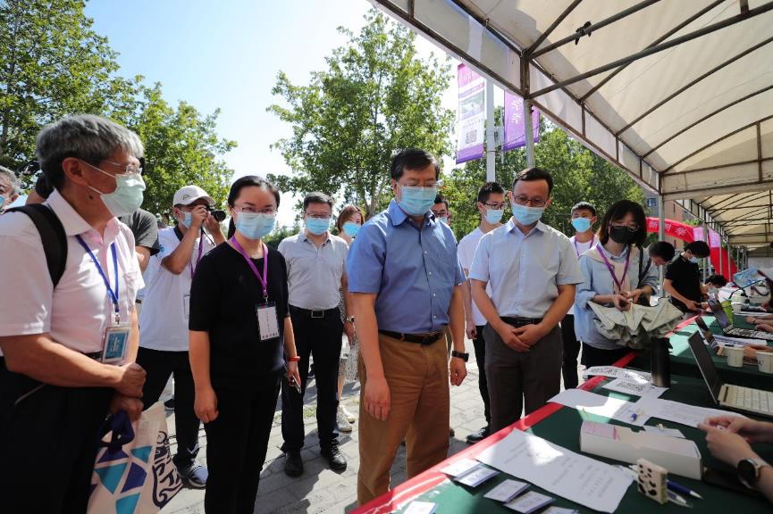 8日上午,校党委书记陈旭,常务副校长王希勤,副校长吉俊民、彭刚等来到东北门、学生服务中心(C楼)迎新点、学生公寓检查迎新工作,看望前来报到的本科新同学,并慰问参加迎新工作的师生员工。在“绿色通道”办理处,陈旭仔细询问了2020级家庭经济困难新生的报到情况和绿色通道申请情况,并与正在绿色通道办理手续的新生亲切交流,询问他们的报到情况。
