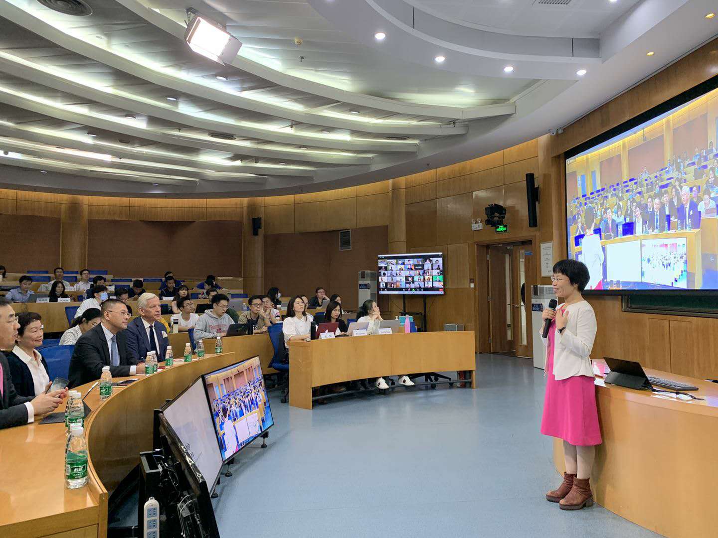 “我的经验是线上同学必须打开摄像头,这个要求很关键。同时,也提醒授课老师们三个特别需要注意的点:对线上同学讲话的时候,要注意面向摄像头,而不是屏幕,需要养成习惯;有些线上同学的发言音量不稳定,我们可以再找找原因;线下同学发言递话筒的速度也可以优化。我的第一次‘试水’感觉还好,学生们非常给力。相信随着经验的积累,效果会越来越好的。”