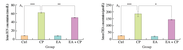图1.鞣花酸改善顺铂诱导的小鼠急性肾损伤