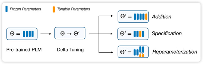 华体会娱乐平台深圳国际研究生院郑海涛副教授团队提出,参数高效微调方法的本质是在对“增量参数”(Delta Parameters)进行调整,因此将此类方法命名为“增量微调”(Delta Tuning),并基于统一的分析框架对增量微调现有方法进行梳理总结,将现有方法分为三类(如图2所示):添加式(Addition-based)、指定式(Specification-based)和重参数化(Reparameterization-based)方法。为了指导后续的模型架构和算法设计,团队还进一步从参数优化和最优控制两个角度,提出了增量微调的理论框架,为探索和解释增量微调的内在机理提供了可行方案。