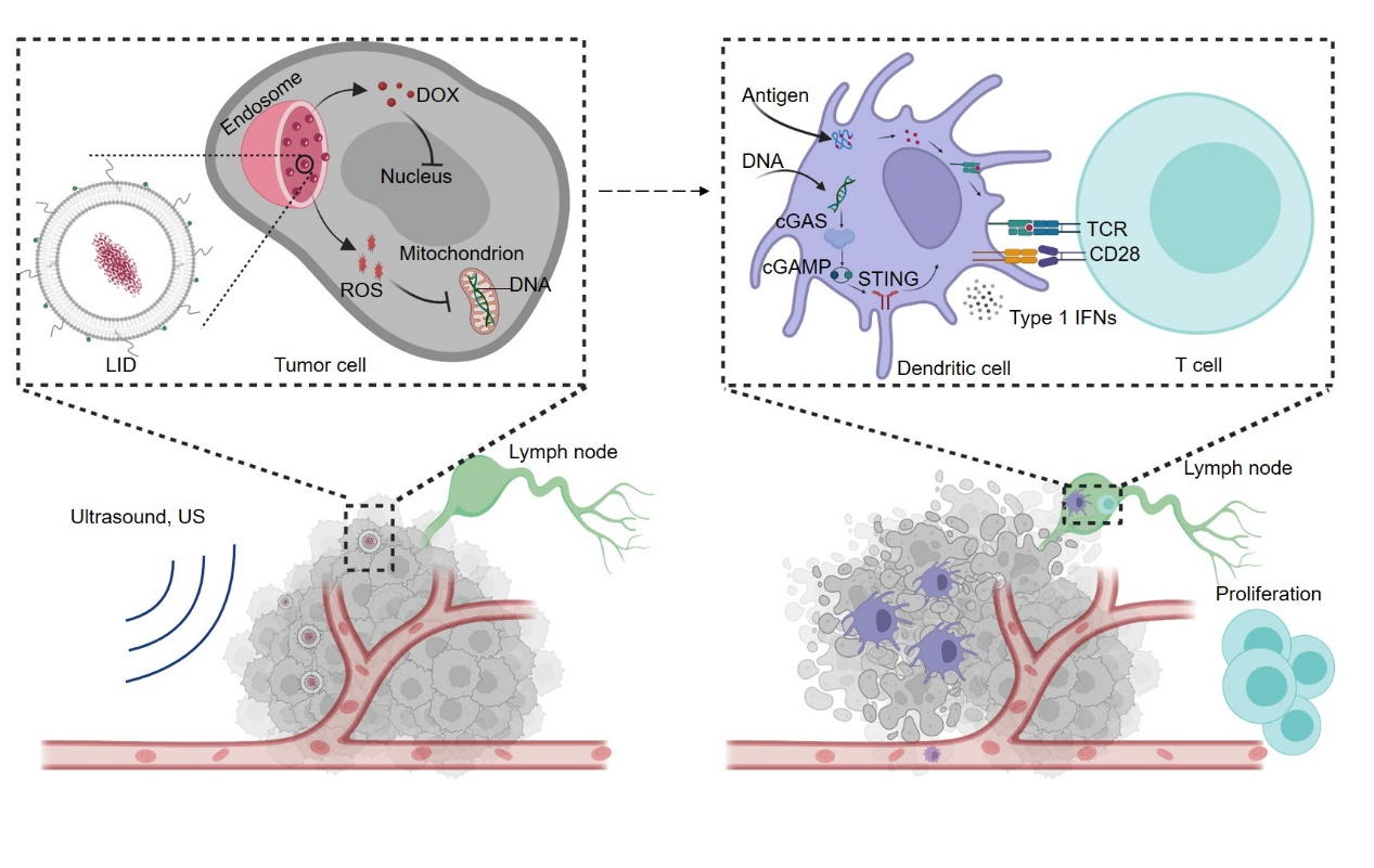 研究成果以“具有超声波响应性的低剂量阿霉素脂质体触发线粒体DNA释放并激活cGAS-STING介导的抗肿瘤免疫应答”(Ultrasound-responsive low-dose doxorubicin liposomes trigger mitochondrial DNA release and activate cGAS-STING mediated antitumour immunity)为题发表在《自然·通讯》(Nature Communications)期刊上。