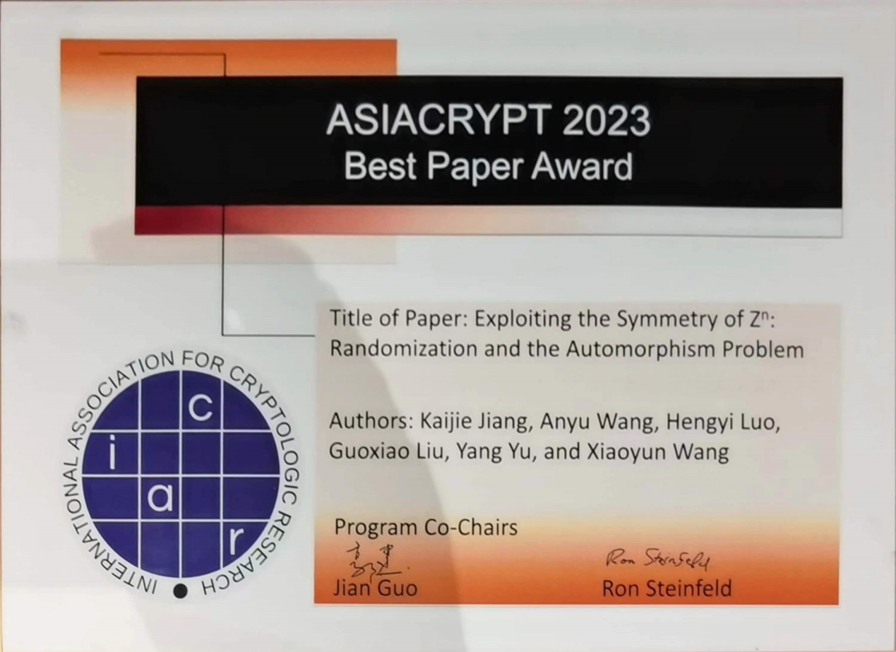 本次亚密会最佳论文“Zn上随机性和自同构问题探索”(Exploiting the Symmetry of ZnRandomization and the Automorphism Problem)针对整数格(即同构于Zn的格) 提出了一种随机化的归约框架,并得到了一系列全新的归约结果。该工作证明了在随机归约的意义下,求解整数格与Zn之间的同构与求解一个整数格的非平凡自同构是等价的,揭示了整数格的高度对称性与其计算困难问题之间存在着深刻的内在联系。研究首次证明了整数格最短向量问题与最短特征向量问题的等价性、最短向量问题与常数因子最短向量问题的等价性等结果,拓展了人们对于整数格计算困难问题的认知,并为格的随机归约提供了新颖的理论工具。