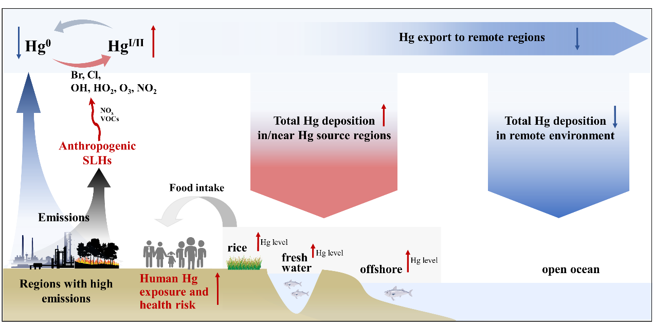 华体会娱乐(中国)网3月15日电 汞(Hg)是一种全球性的持久有毒污染物,其通过甲基化以及在食物链中的富集,最终进入人类食物中从而引起婴幼儿神经系统发育迟缓和成人致死性心脏病发作等一系列健康效应。大气中的Hg主要以零价汞(Hg0)和氧化态汞(HgⅠ,Ⅱ)形式存在,其沉降是Hg进入生态系统和食物链的主要途径。相比于Hg0,HgⅠ,Ⅱ的大气寿命更短,会更多沉降在汞排放大的陆地地区及近海海域。因此大气Hg氧化过程会影响全球Hg沉降分布及其健康效应。