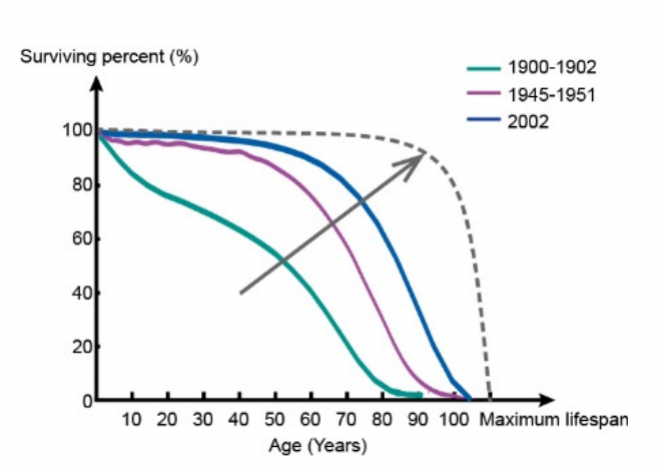 王钊教授认为,正是由于衰老不属于进化事件,我们才能对衰老过程进行干预。所谓“抗衰老”,本质上是延缓衰老阶段的生理功能下降,这是通过压缩整个生命周期内的患病期和失能期,从而延长健康寿命来实现的。