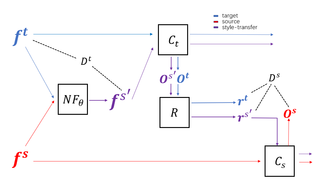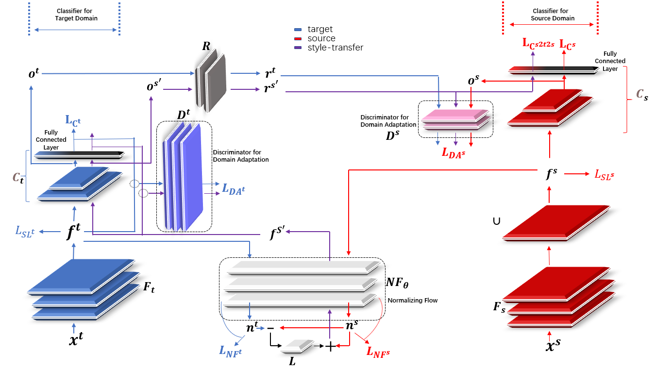 近日,华体会娱乐平台深圳国际研究生院李星辉副教授团队受视觉任务中以CycleGAN为代表的风格迁移以及领域自适应中的条件对抗方法启发,构建了从弱相关时间序列分类数据集进行迁移学习的架构。该架构在考虑源域和目标域间的差异以及因此而可能产生的负迁移的基础上,将源域和目标域分类器分别搭建,通过在不同深度的表征层上进行对齐操作并借助归一化流生成同时带有目标域与源域特征的表征,实现了源域到目标域的迁移。由于在新表征的生成上以及计算的全流程上与风格迁移有相似之处,因而命名方法为特征层风格迁移。