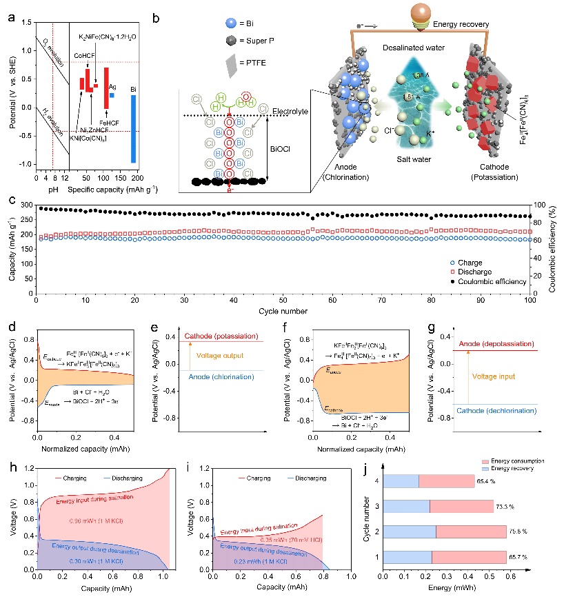 图1 脱盐电池的工作原理、性能验证及能量回收