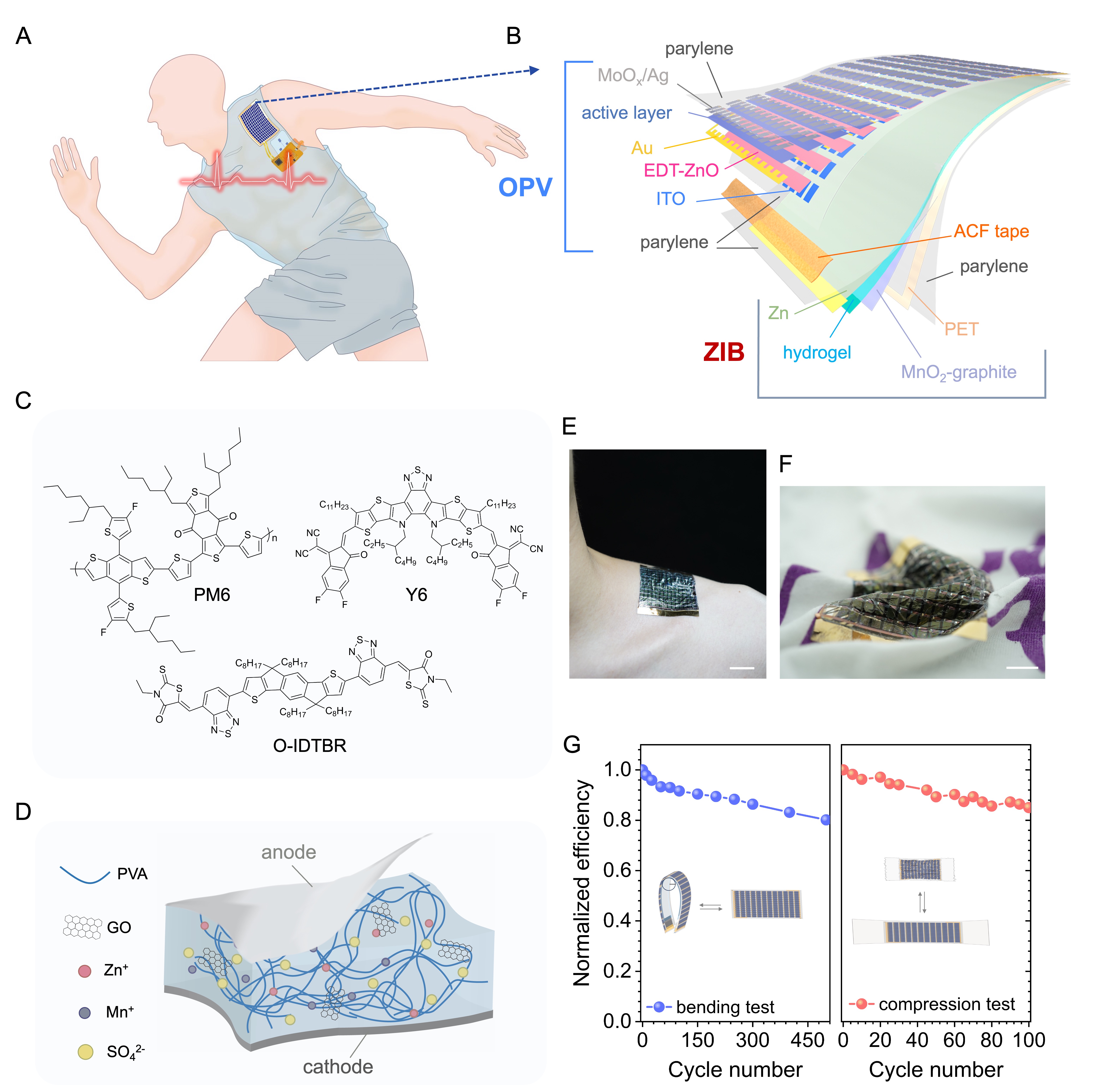 近日,华体会娱乐平台深圳国际研究生院徐晓敏团队与周光敏团队等合作,报道了厚度仅90微米的超柔性能量收集-储存一体化系统,该系统由超柔性高性能OPV组件与超薄锌离子电池(ZIB)集成,其为可穿戴生物传感系统及日常电子设备供电展示了FEHSS作为新一代可穿戴绿色能源设备的可行性(图1)。