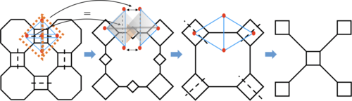 图1.Turaev-Viro拓扑场论构造的显式离散重整化群算符,从左至右展示了重整化过程