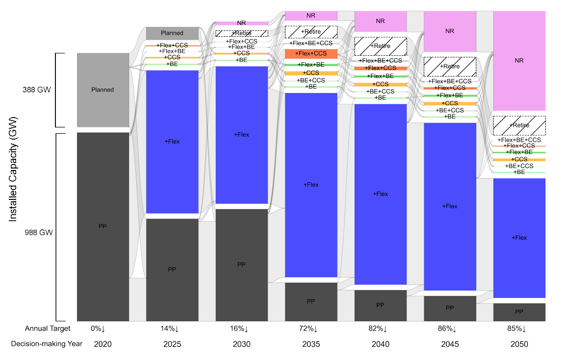 研究发现,在中国“双碳”目标下,煤电行业排放达峰时间和2050年是否实现净零排放均不是降低燃煤电厂转型成本的关键。而在2030年至2040年间快速提升减排目标,实现深度脱碳,对于降低中国燃煤电厂转型成本具有重要作用。同时,合理设置碳减排路径可在不额外增加成本的情况下实现更高的累计碳减排量。