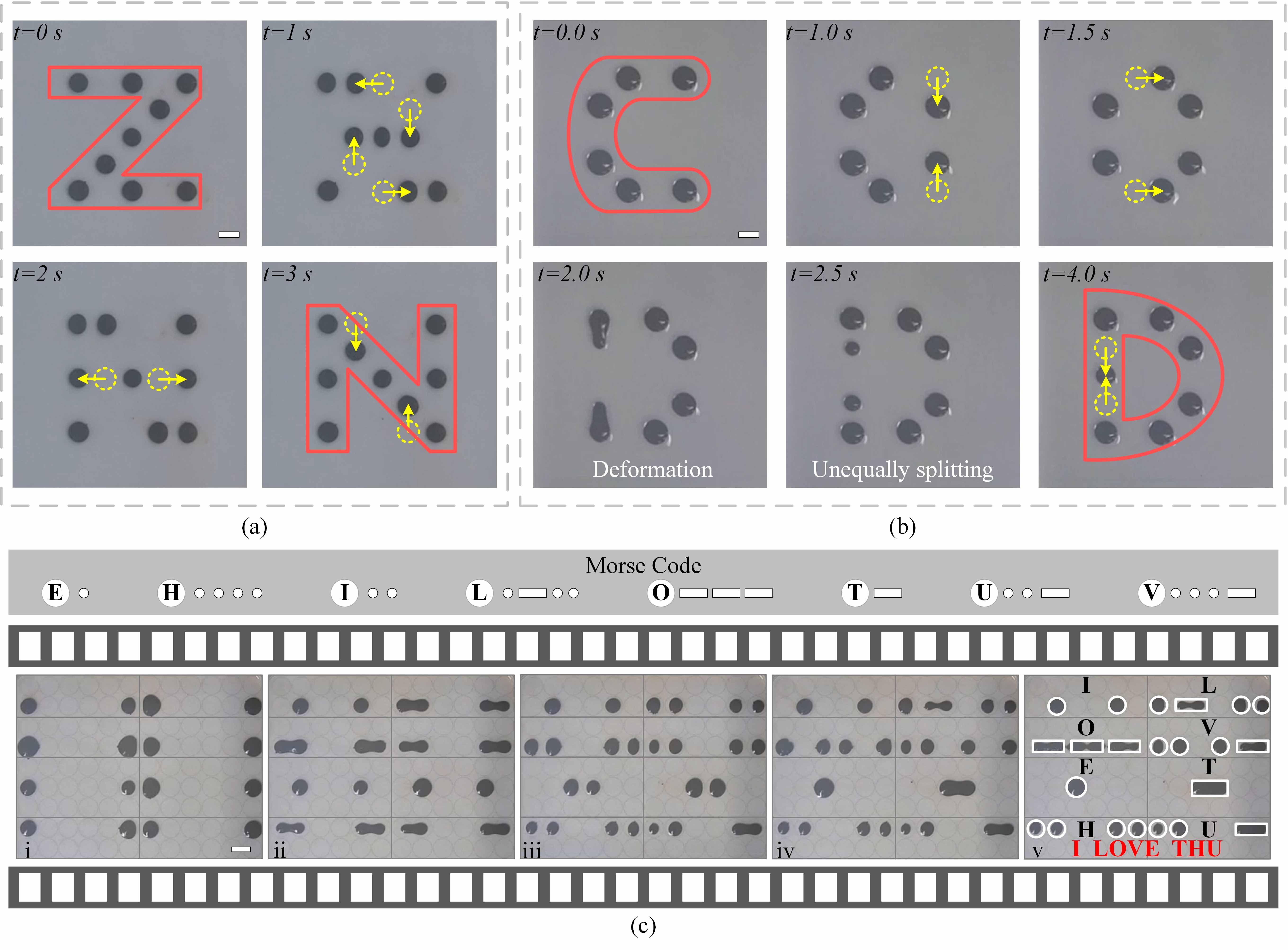 近期,华体会娱乐平台深圳国际研究生院副教授曲钧天团队围绕磁流体液滴机器人在大规模、独立与可编程操控方面的关键技术难题,成功开发出一套基于电磁线圈阵列的可编程操控平台。通过灵活部署液滴机器人,该平台在数字图案显示、信息编码及流体操作等领域展现出广泛的应用潜力。