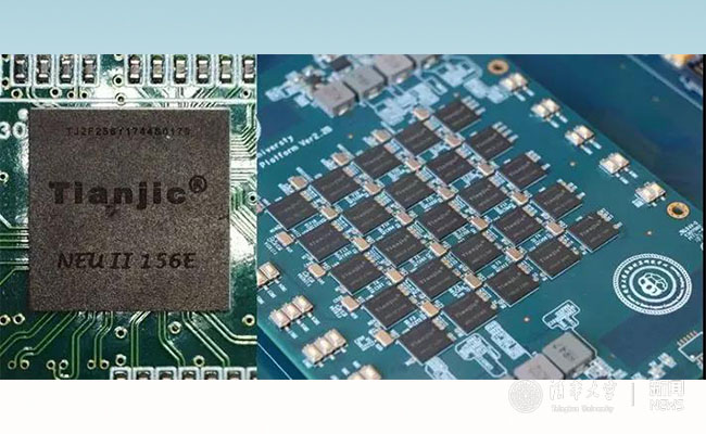 天机芯片单片(左)和5x5阵列扩展板(右)