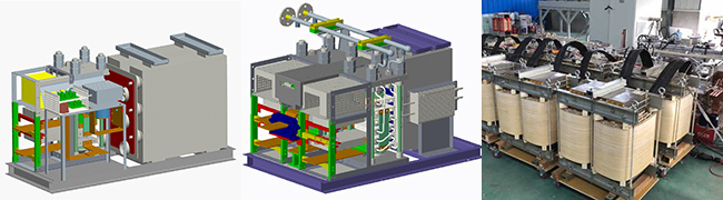 自主研制的全国产化IGCT-MMC模块(左:半桥模块,中:全桥模块,右:功率对冲平台)