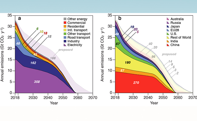 本研究指出了全球应对气候变化的困难与紧迫性,未来必须通过严格限制高碳型能源投资,加快可再生能源发展,缩短现役高碳型能源设备的服役寿命或设备利用率,推广碳捕集技术,从电力、工业、交通和民用等不同行业分别着手,实现快速、深远和前所未有的改变,向绿色低碳发展和清洁能源系统转型,以实现全球温控目标。